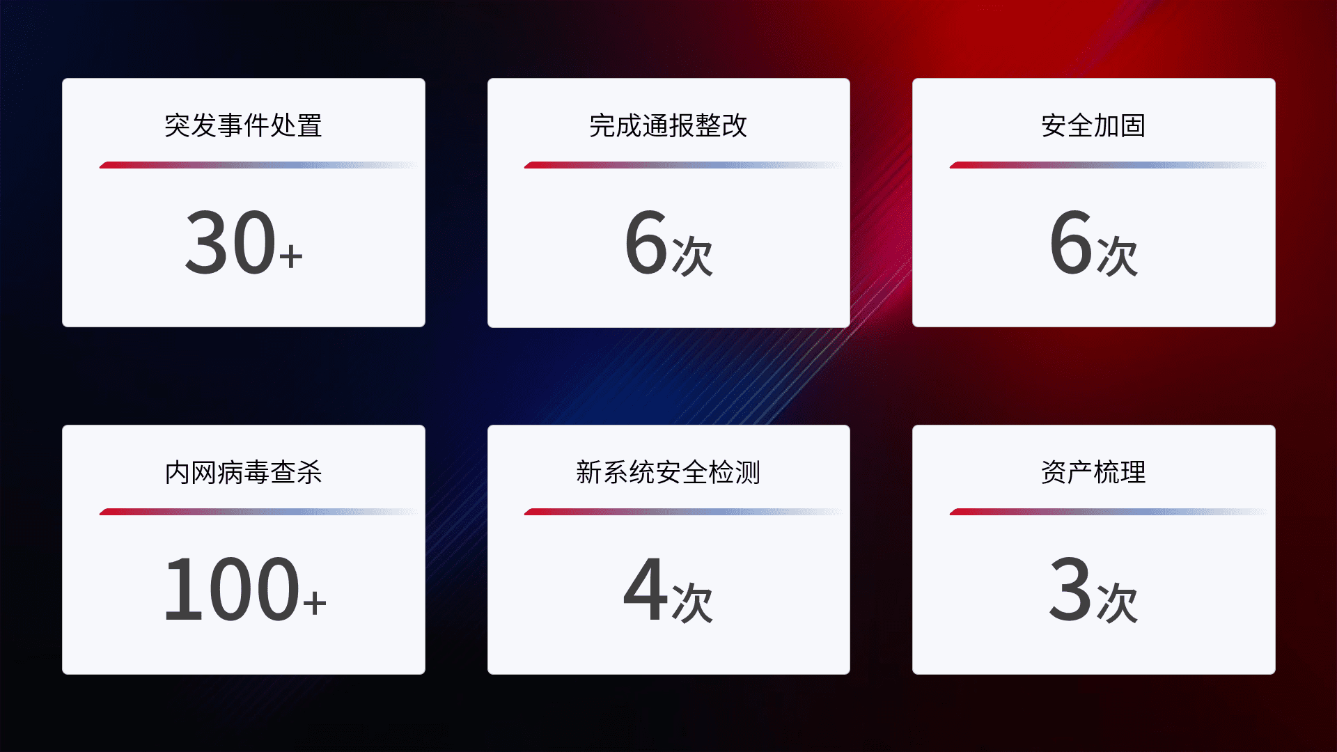 网络安全加固与风险管理:通过技术加固手段,,如加强区域隔离,,缩减攻击内网横向移动的范围;优化现有网络安全管理制度,,降低网络威胁暴露面,,,,减少被黑客攻击的可能性。。